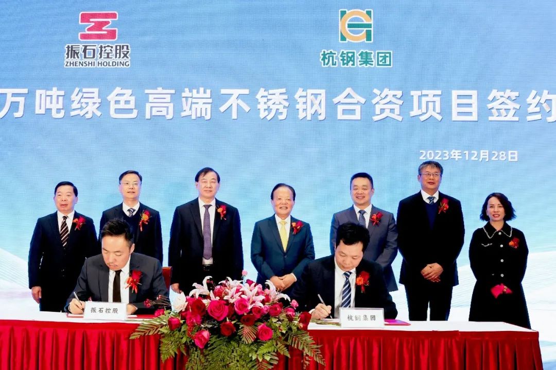 12月28日,振石控股集團(tuán)與杭鋼集團(tuán)簽訂投資合作協(xié)議,全力推進(jìn)綠色高端不銹鋼智造項(xiàng)目。